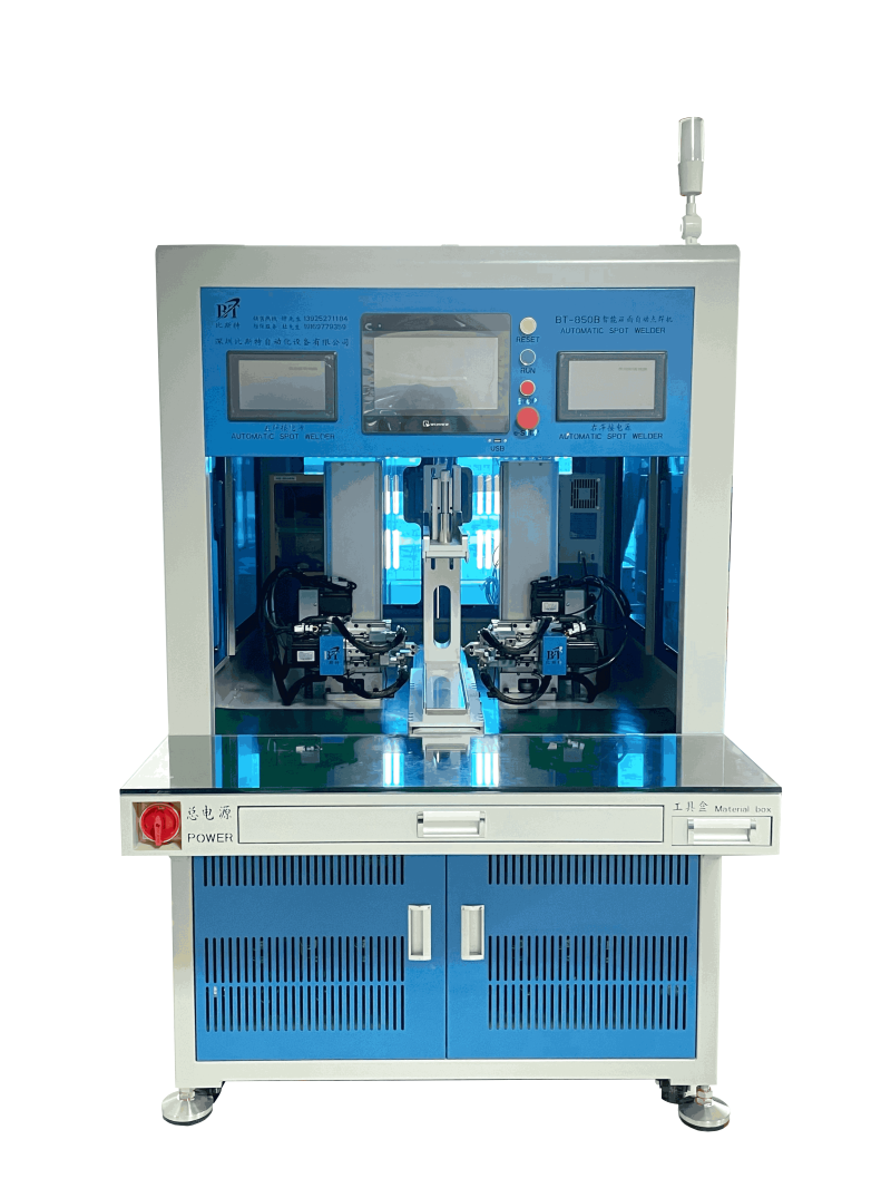 4. 标配点焊机: HEQUAN MDA-4000B,数量 2 台,点焊速度快,焊点温 度低,实时监控焊接过程,电流过小或炸火自动报警和点焊过程中出现 异常,机器自动报警并停止机器